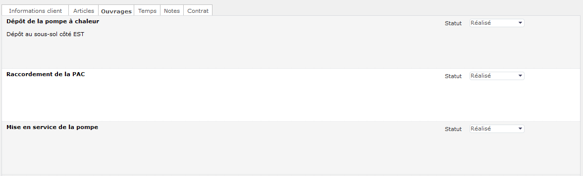 Tous les ouvrages sont passés au statut Réalisé dans l'onglet Ouvrages :