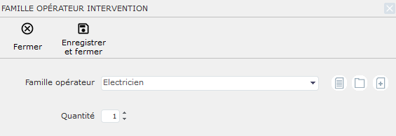 Nous sélectionnons dans un premier temps la famille d'opérateur Electricien, pour une quantité de 1 :