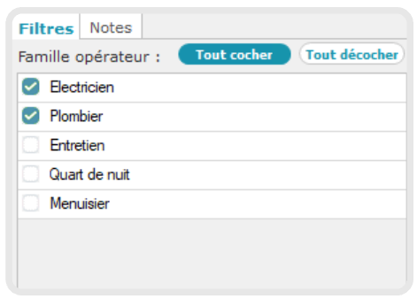 Nous appliquons ensuite un filtre sur les familles d'opérateurs à afficher, pour n'afficher que les électriciens et les plombiers.