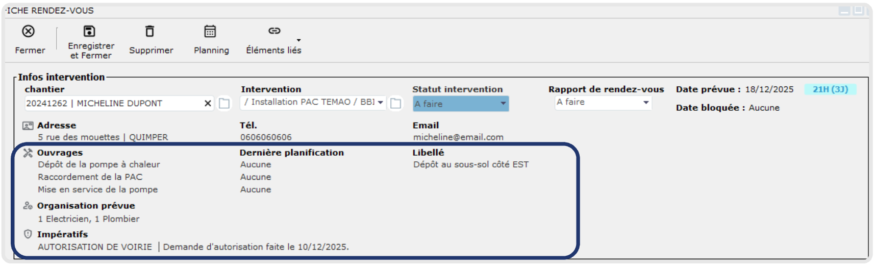 Planifier l'intervention