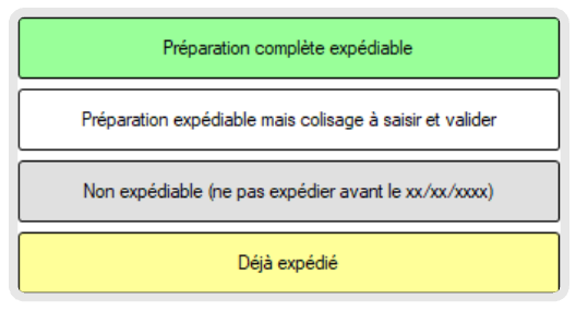 Le bouton expédier n'est disponible que lorsque le colisage est défini et validé.
