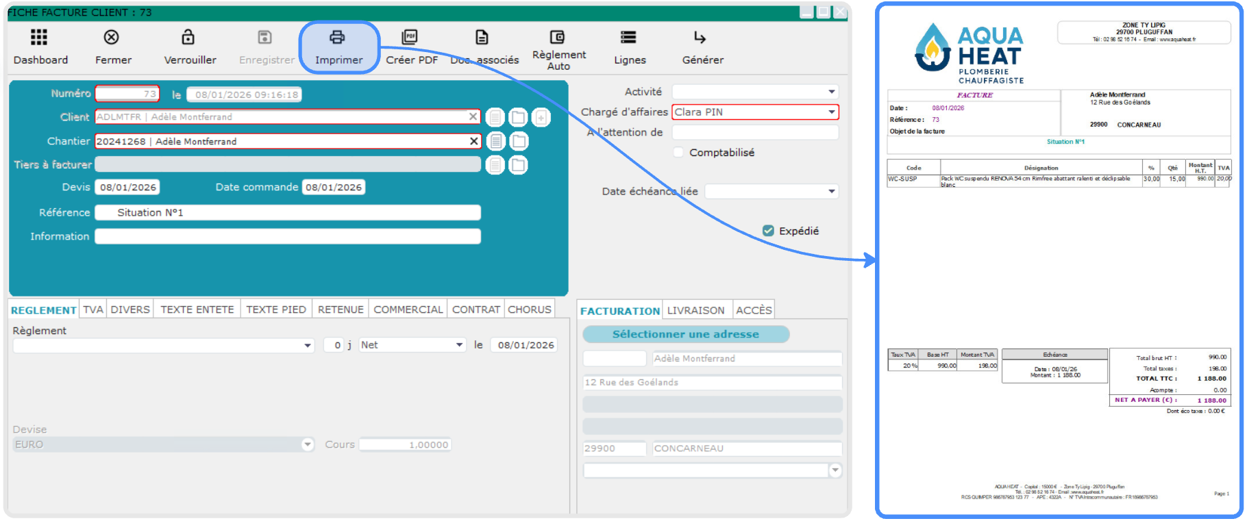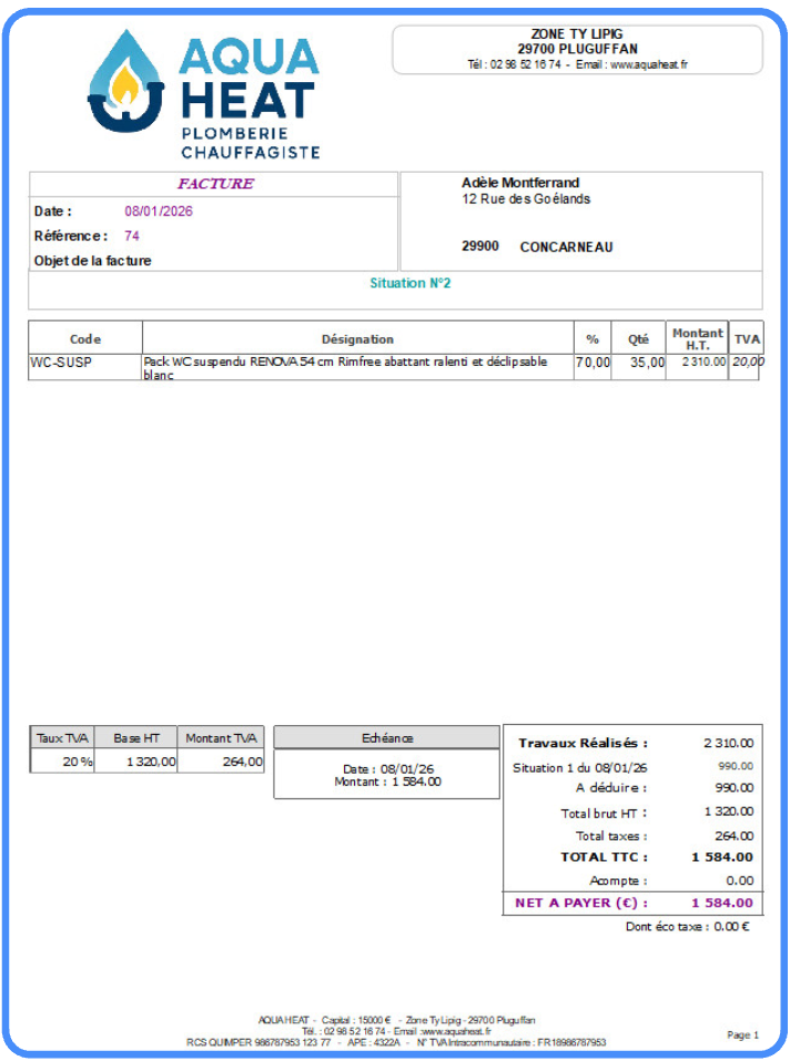 L'entreprise AQUA HEAT doit équiper 5 étages d'un immeuble en systèmes de climatisation. Elle souhaite émettre des factures de situation à chaque fois qu'un étage est équipé.